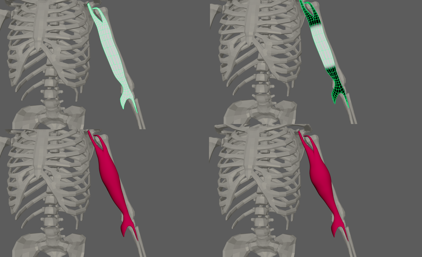 | Volume Preservation | Float | 1.0 | ✓ | The amount of volume to preserve the current simulated muscle. Has a range of [0.0, 1.0]. The upper limit is soft, higher values can be used. |