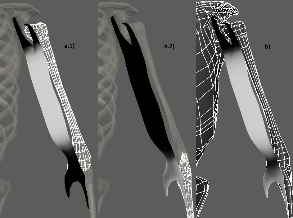 - It is also recommended to paint only the vertices that are not attached to the rig, i.e. excluding the tendon vertices.